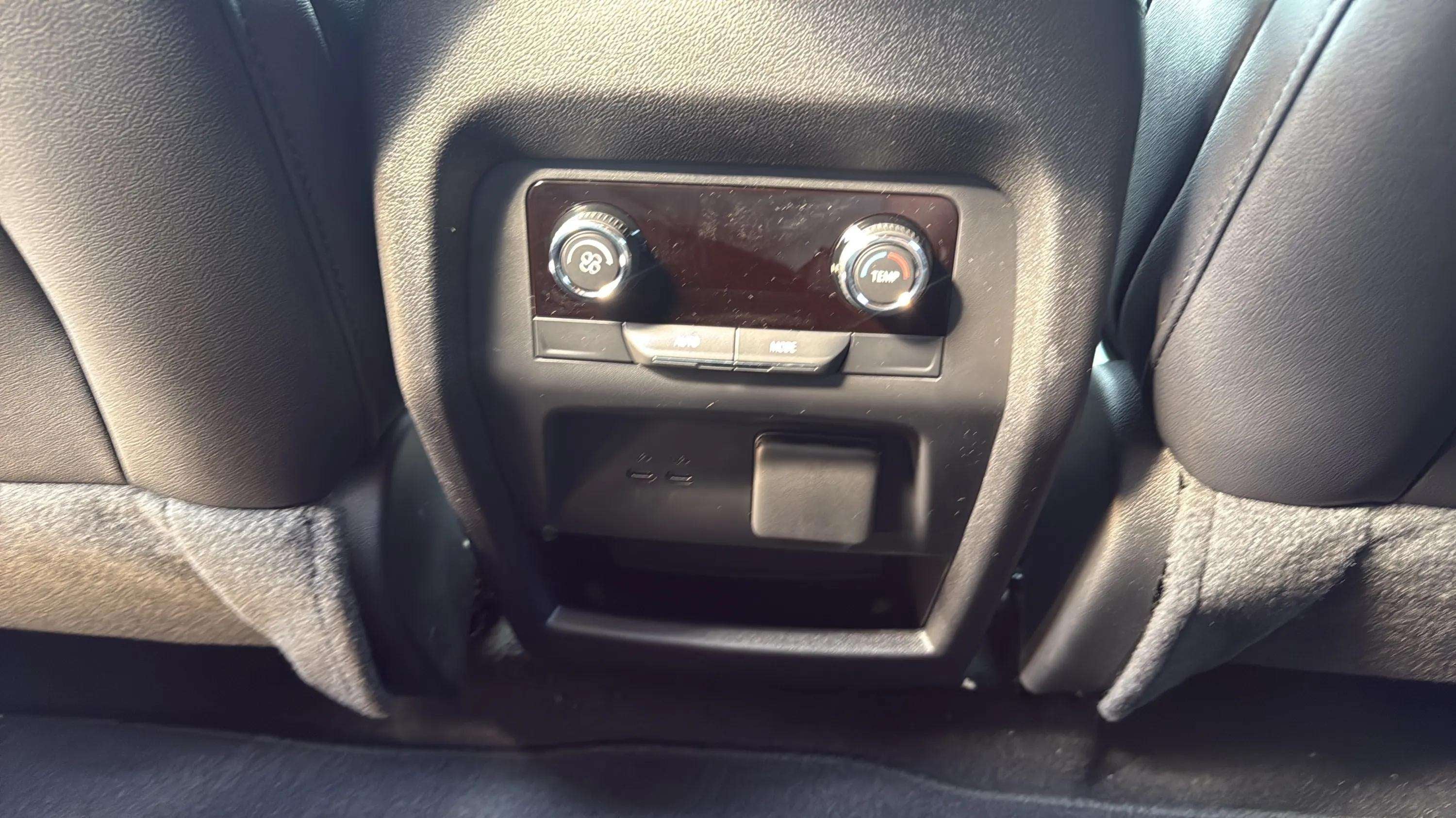 - Auxiliary controls in the rear of the cabin include air delivery mode and temperature up/down settings